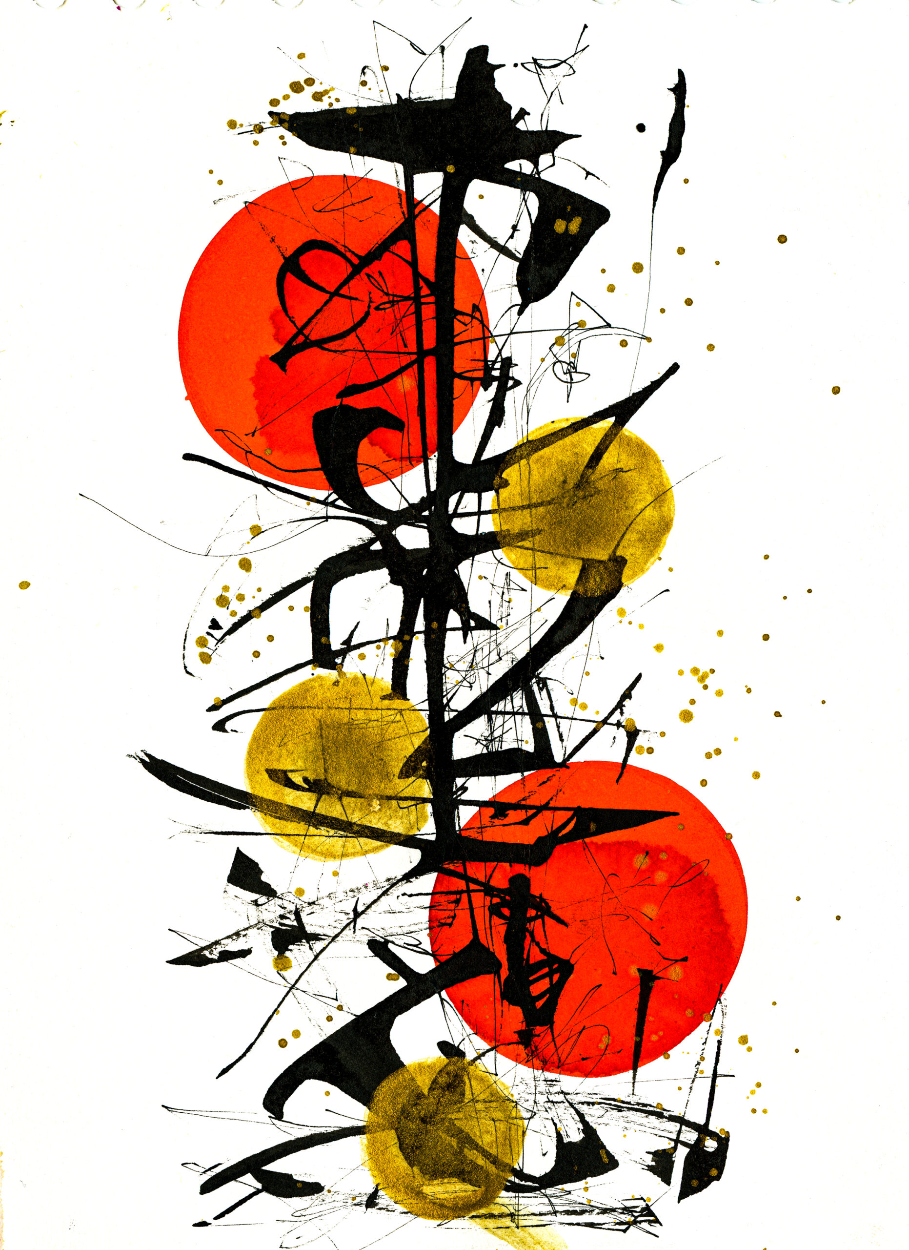The Observations of Angelus Novus Golden Orbs_ ink on paper Leave a Comment / By ellajohnston12 / June 26, 2022